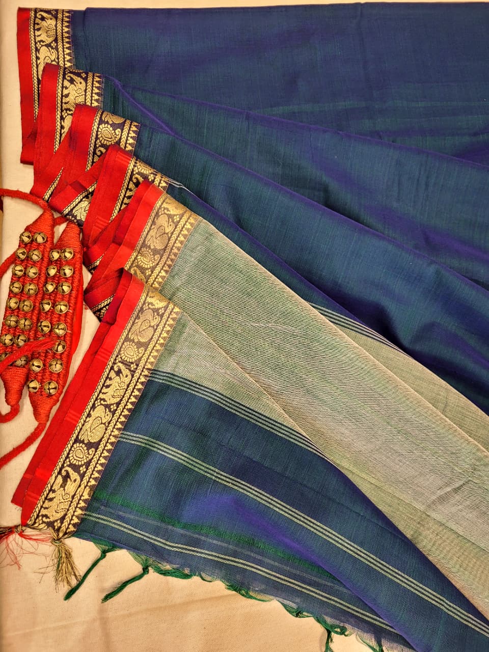 Saree Fabric: Blended cotton for a lightweight and comfortable feel. Design Details:Blue body with a...