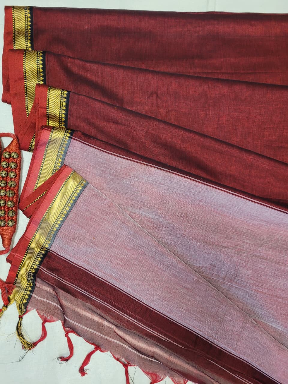 Fabric: Rich cotton sareeLength: 6.25 meters (including blouse piece)Blouse: self blouse in plain with bordersPallu:...