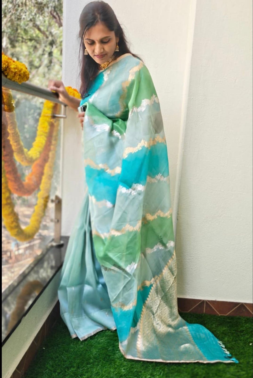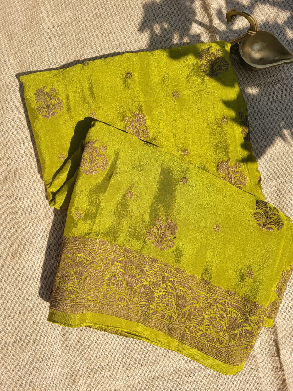 Fabric: Tissue fabric, extremely soft and lightweight for all-day comfort.Length: 5.5 meters (without blouse piece).Blouse:...