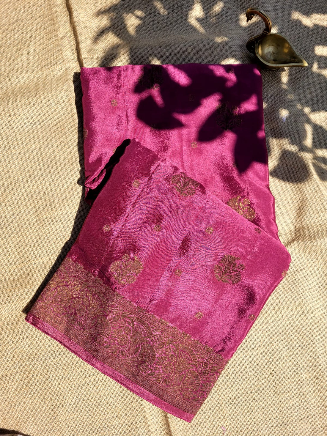 Step into timeless luxury with our Banarasi Satin Saree, a masterpiece that celebrates the grandeur...
