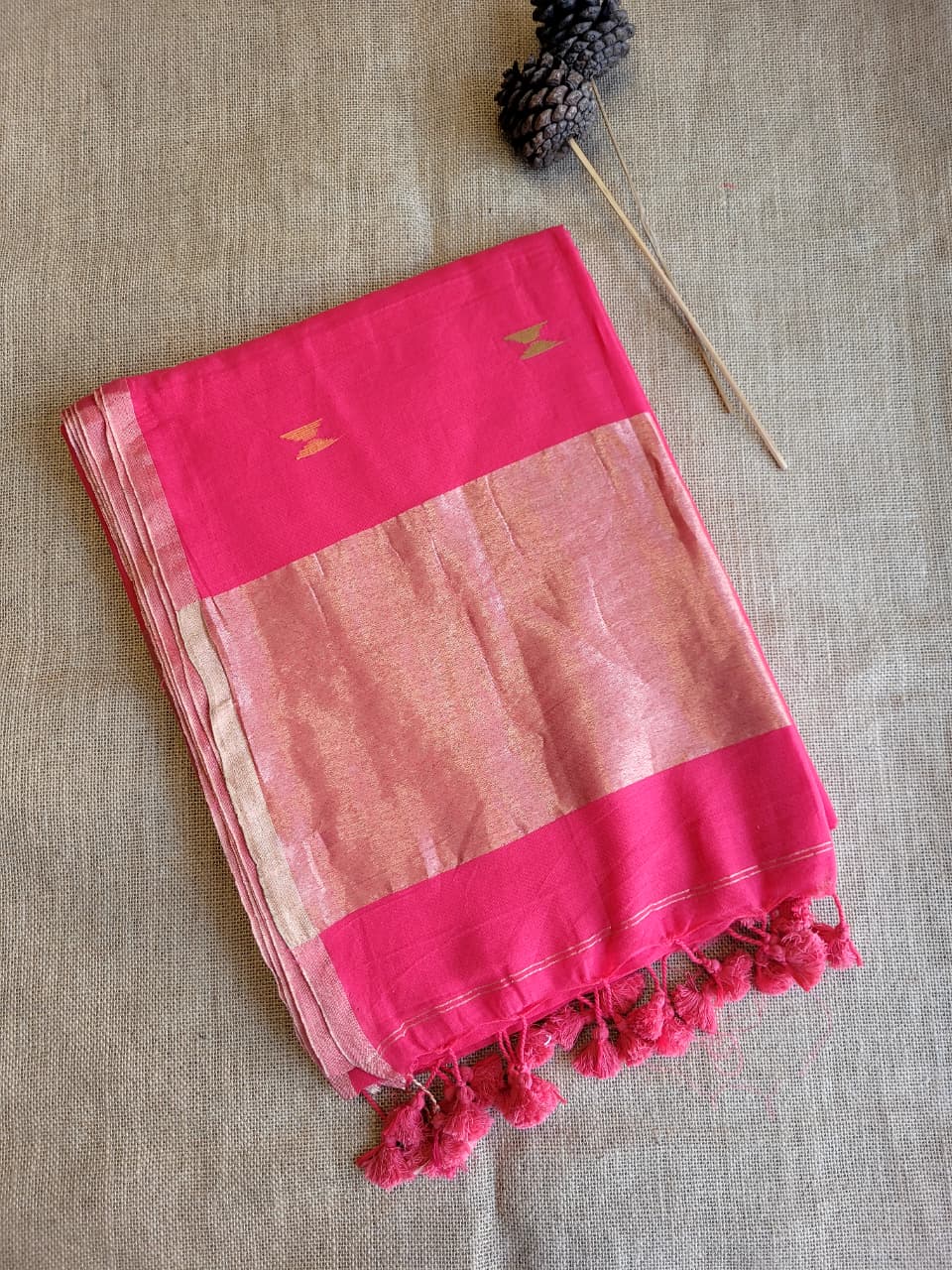 Saree Fabric: Blended cotton for a lightweight and comfortable feel. Design Details:Pink body with a...