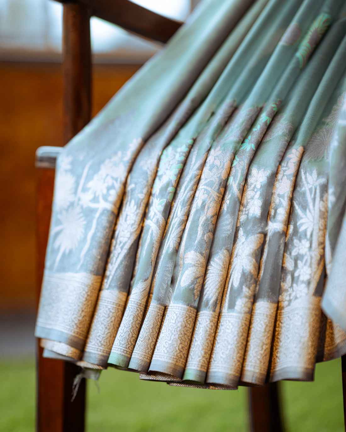 Fabric: Lightweight and ethereal Organza Banarasi Length: 6.25 meters (including blouse) Blouse: Exquisite blouse with...