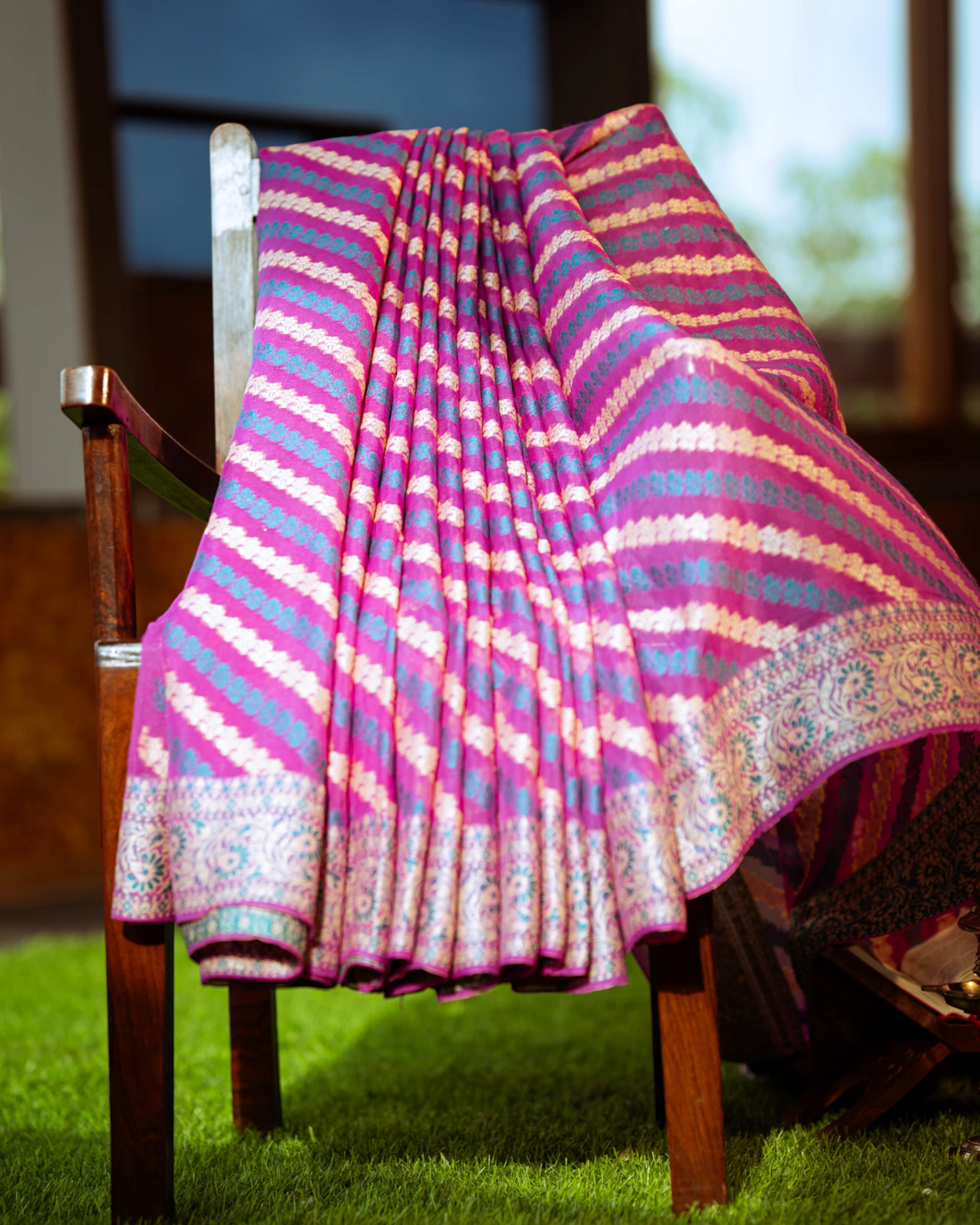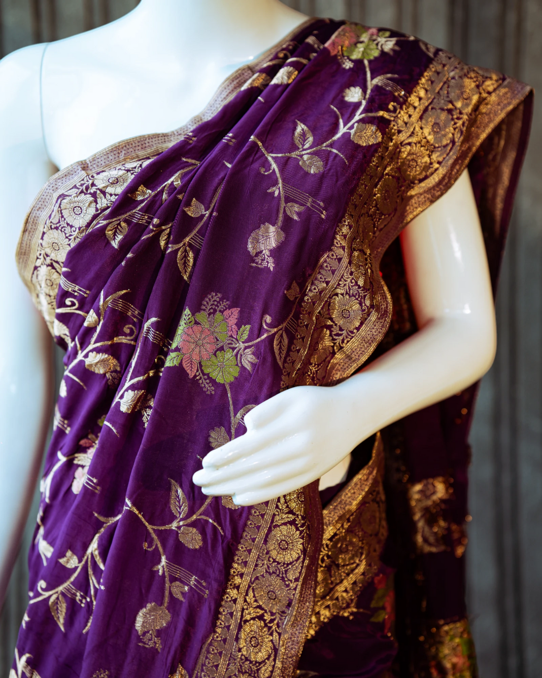 Introducing the elegant and versatile Purple Meera Chiffon Saree. Made from pure banarasi chiffon and...