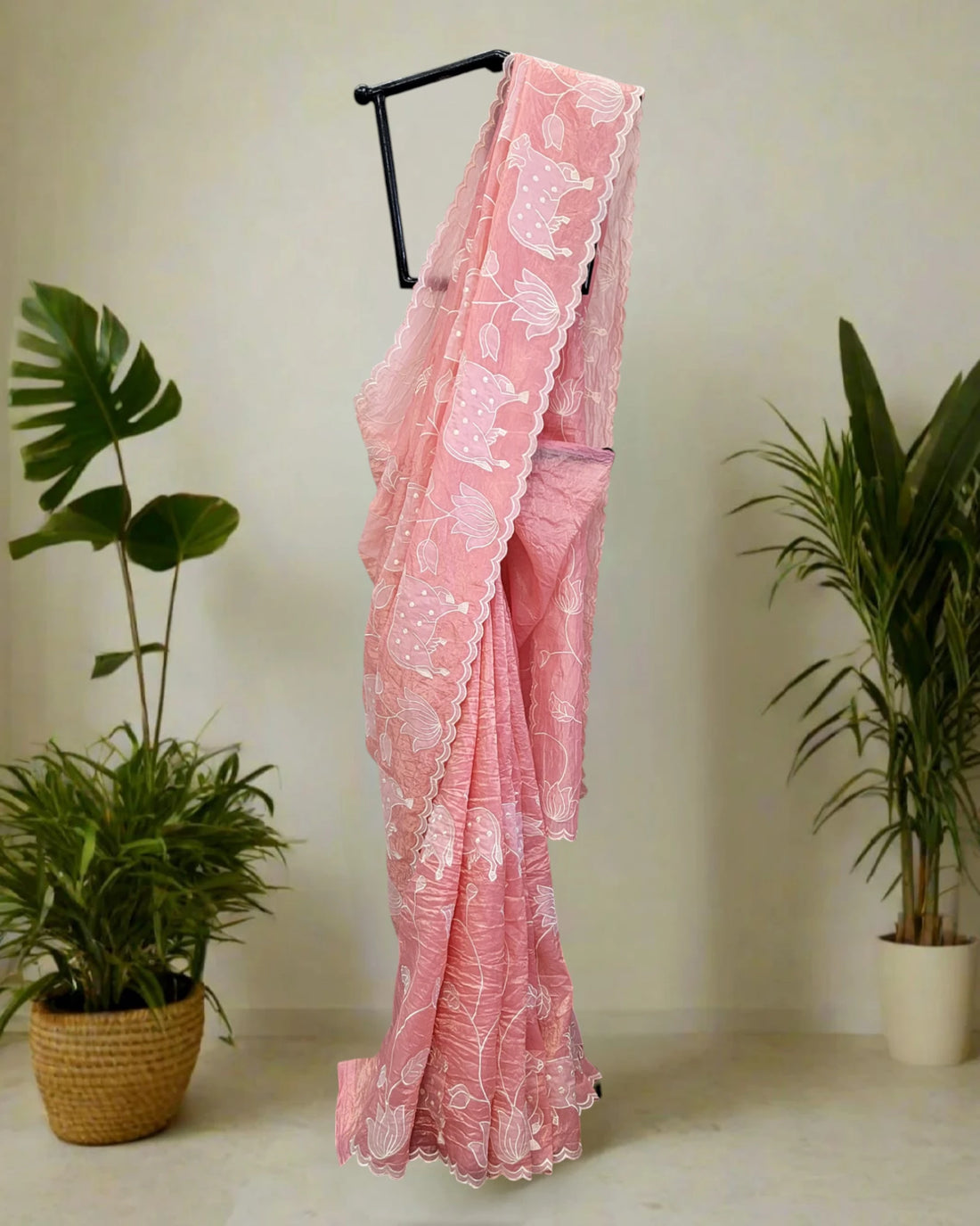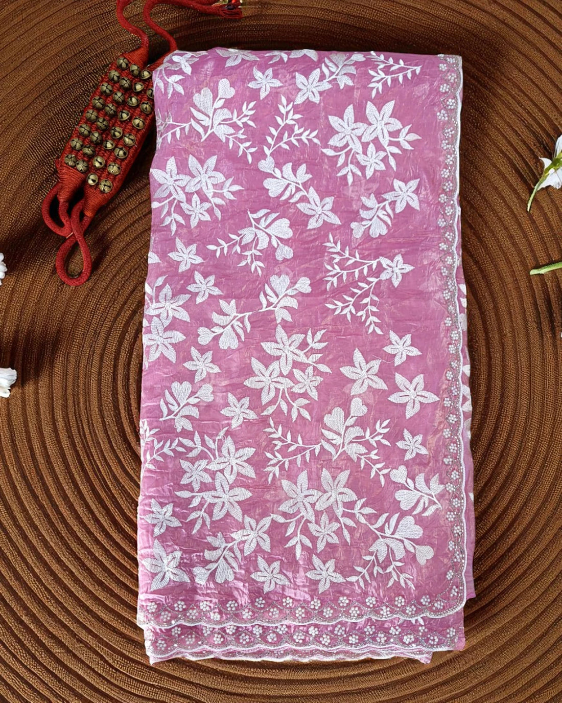 Pink Tarini Saree (Lotus Embriodery Blouse)