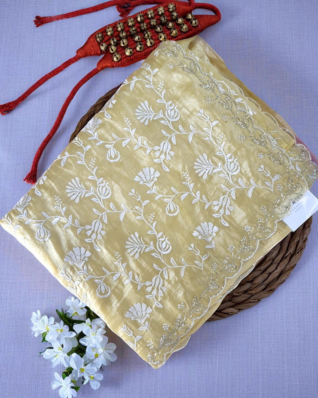 Fabric: Soft and flowy Tussar silkLength: 6.25 meters (including blouse piece)Blouse: Matching blouse piece includedPallu:...