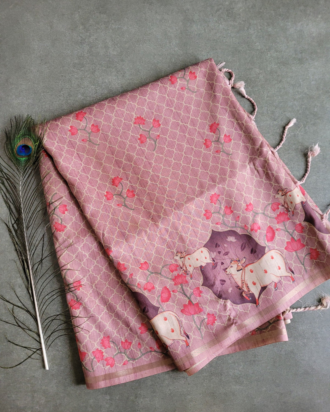 Saree Fabric: Blended cotton for a lightweight and comfortable feel. Design Details:Pink body with a...