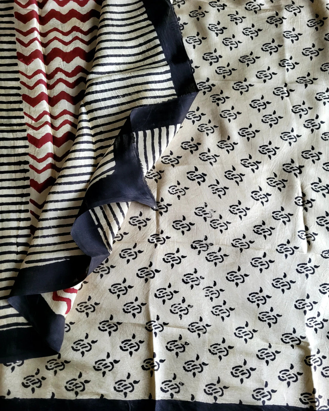 Saree Fabric: Blended cotton for a lightweight and comfortable feel. Design Details:Black body with a...