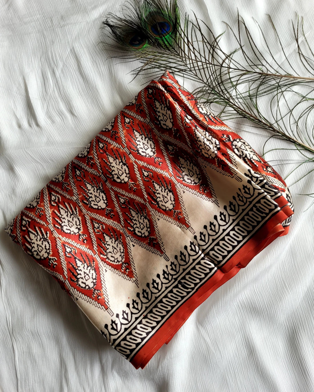 Step into timeless luxury with our Banarasi Satin Saree, a masterpiece that celebrates the grandeur...