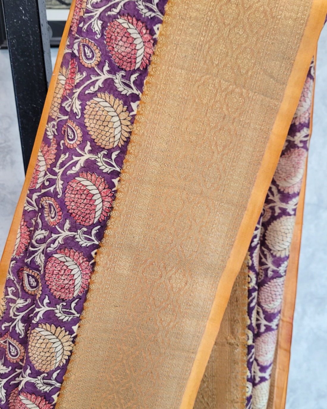 A timeless blend of art and tradition — this pure cotton hand-painted Kalamkari saree is...