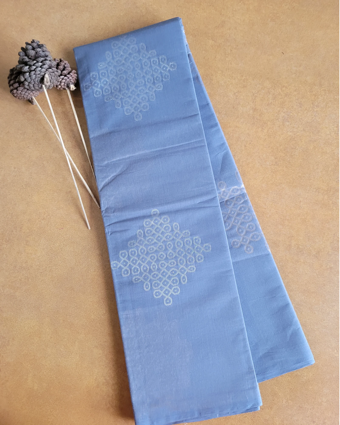 This Blue Krupa Cotton saree effortlessly combines traditional touch with soft and easy-to-drape viscose and...