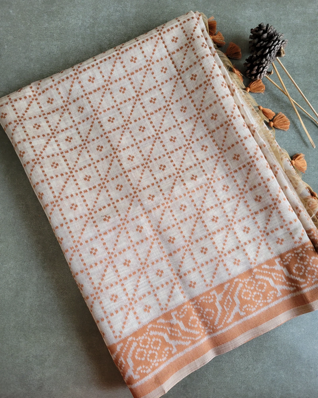 Fabric: Soft and breathable cottonLength: 6.25 meters (including blouse piece)Blouse: Self-color blouse piece includedPallu: Flowy...