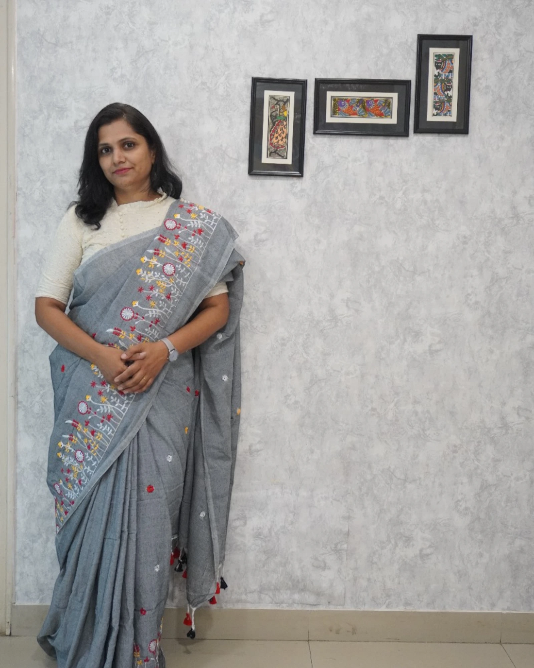 Upgrade your saree collection with our Slate Kriti Tussar saree. Made from semi tussar fabric,...
