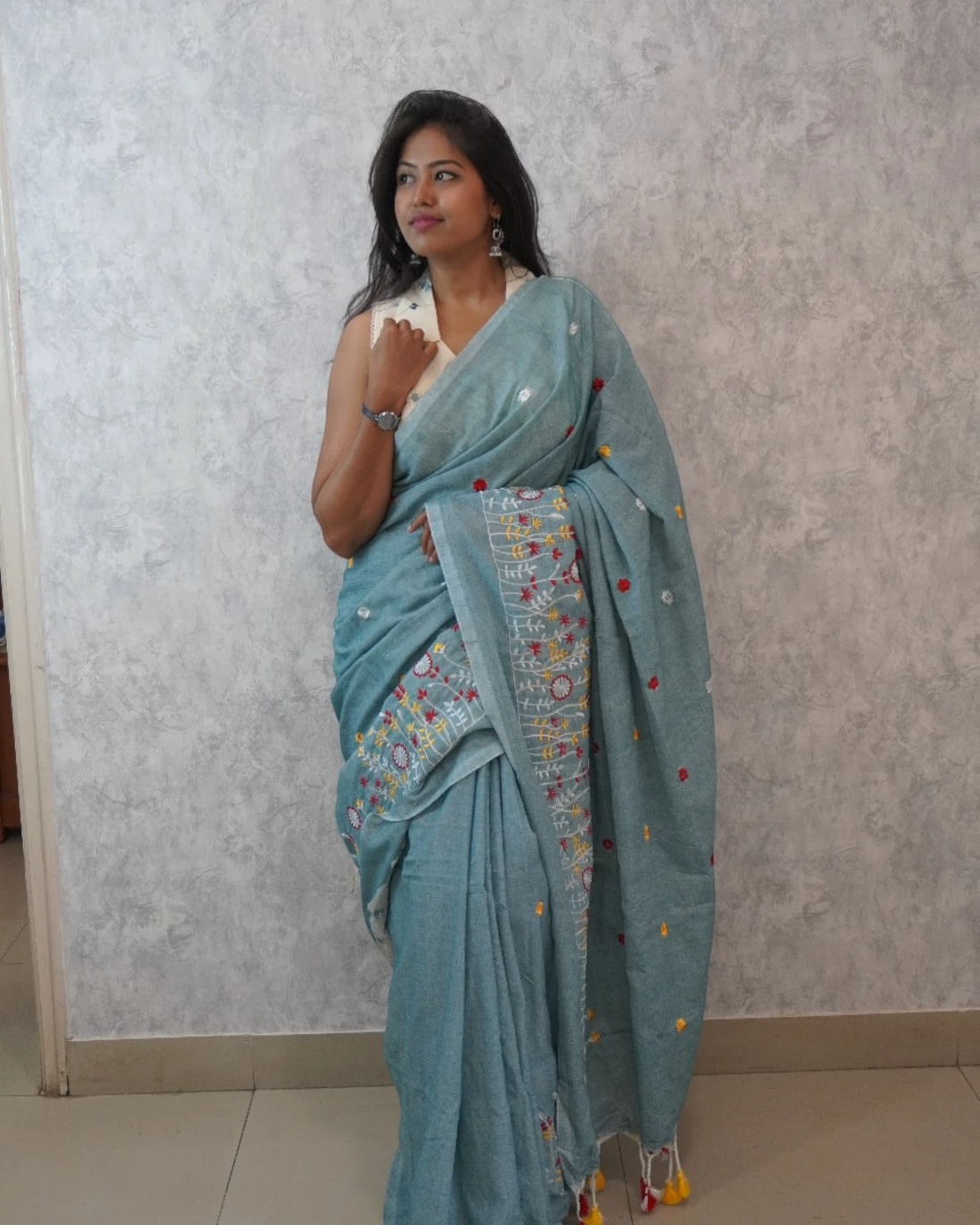 Fabric: Soft and breathable cottonLength: 6.25 meters (including blouse piece)Blouse: Self-color blouse piece includedPallu: Flowy...