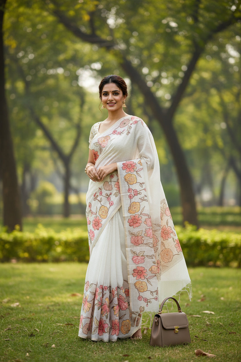 Kalamkari on Silk SareeThis Kalamkari silk saree beautifully blends traditional artistry with contemporary ease. The...