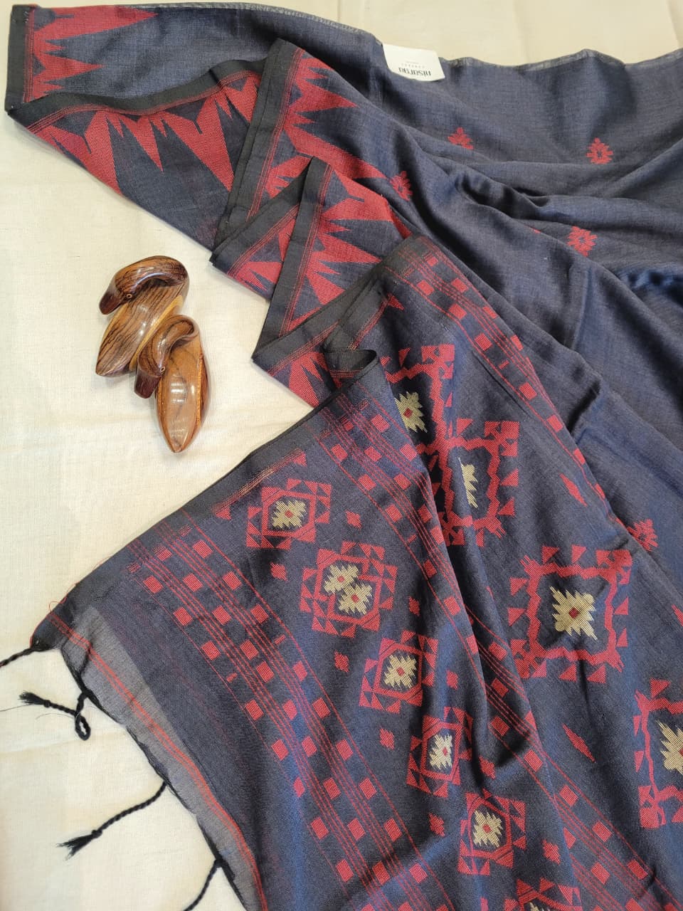 Fabric: A rich blend of Muga silk and cotton, offering the luxurious sheen of silk...