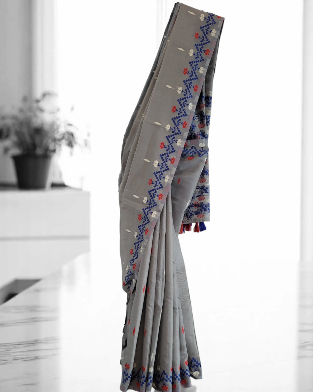 Fabric: Handwoven Bengal cotton for a soft, breathable feel.Length: 5.5 meters (approx.)Blouse: Unstitched blouse fabric...