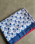 Style: A charming blue cotton saree adorned with delicate floral prints, bringing a touch of elegance to everyday wear. The border features intricate Kantha hand embroidery stitches with fine piping, adding a handcrafted appeal. The self-color blouse ensures a seamless look, making this saree a perfect blend of tradition and simplicity for work or casual wear.