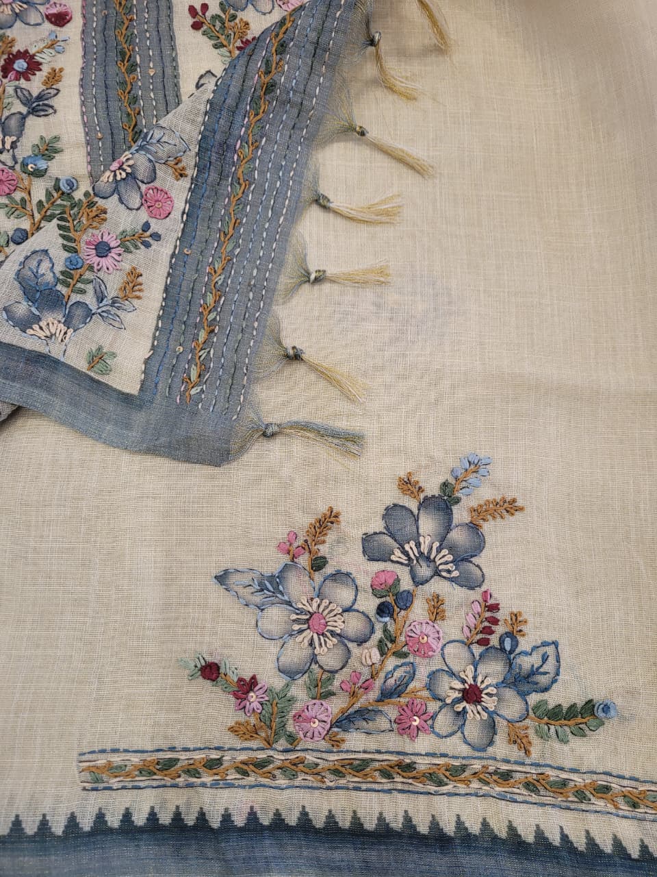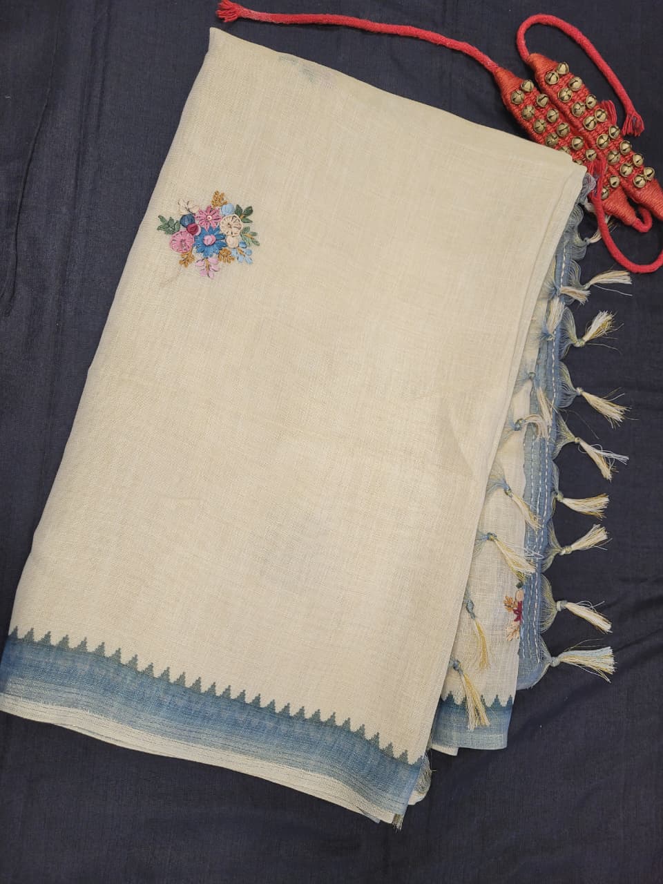 Embrace timeless elegance with this Linen Tissue saree, where refined craftsmanship meets graceful draping. The lightweight linen tissue fabric ensures your pleats fall beautifully with every movement, creating an effortlessly sophisticated silhouette. Delicate embroidery detailing adorns the saree, adding a touch of artisanal charm that elevates your traditional look. Perfect for celebrations or everyday elegance, this saree celebrates your natural grace while keeping you comfortable throughout the day.