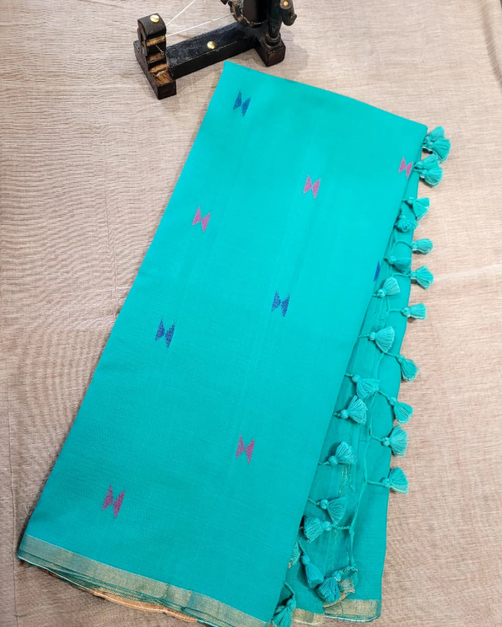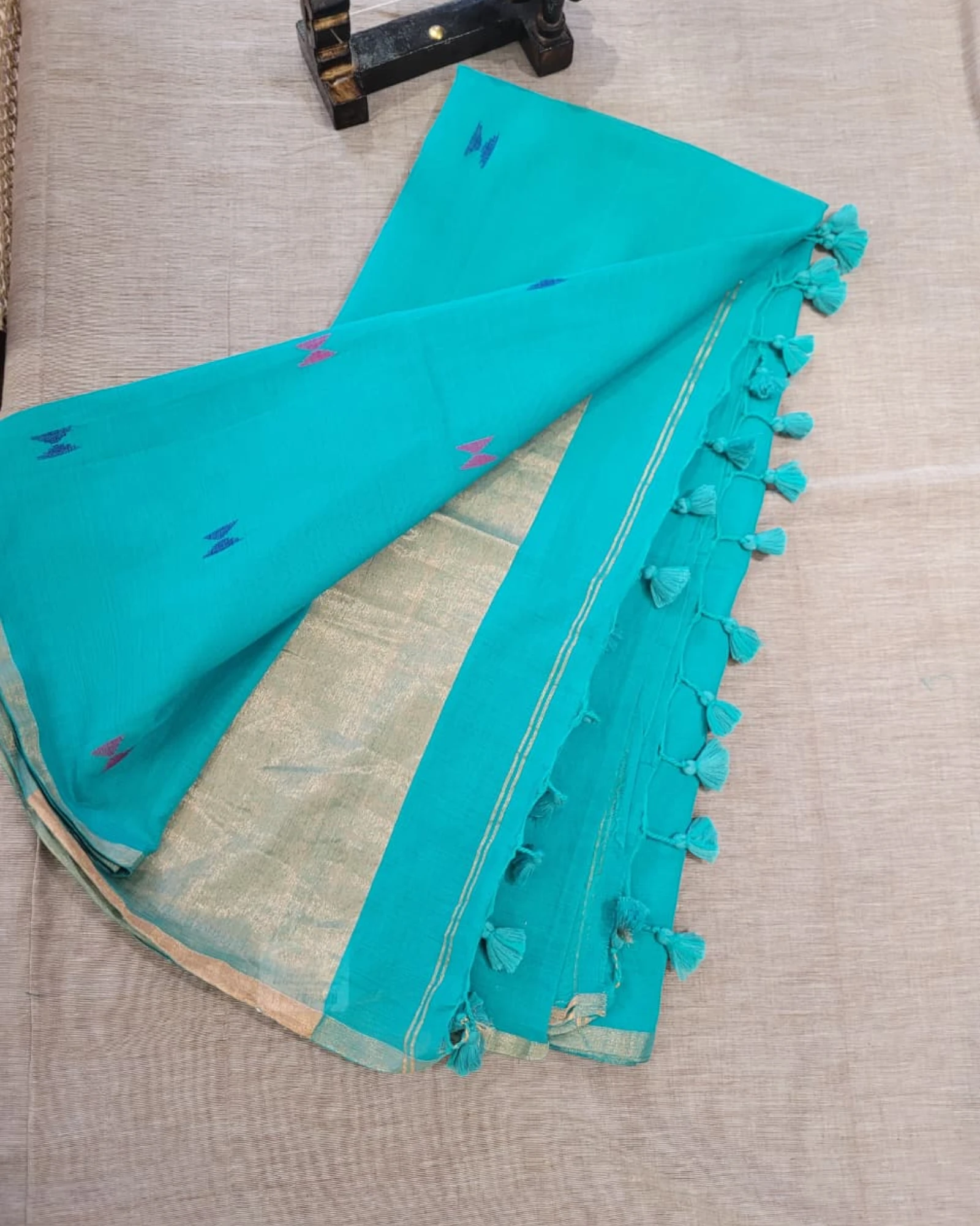 Pallu: Accented with delicate tassels that add a playful finish.