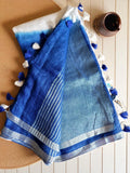 Blue Swarna Linen Saree
