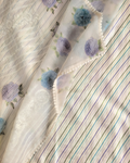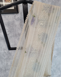 Style: An off-white net saree adorned with exquisite all-over embroidery, creating a dreamy, textured look. The saree is finished with a beautifully detailed lace border, adding a touch of grace and charm. Perfect for evening soirées, festive gatherings, or elegant celebrations.