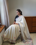 Style: This Muga silk saree is an epitome of craftsmanship, with intricate heavy thread embroidery that takes hours of skilled labor to complete. The pallu is adorned with exquisite handwork that beautifully portrays the essence of village life, bringing an earthy, cultural richness to the saree.