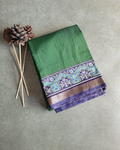 This Green Krupa Cotton saree effortlessly combines traditional touch with soft and easy-to-drape viscose and mul fabric, making it a must-have in your wardrobe. Elevate your style with this versatile and elegant saree.