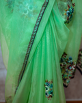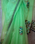 Washing: Organza sarees should be dry cleaned to avoid damage to the delicate fabric.