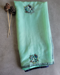 Style: Adorned with delicate hand embroidery featuring French knots all over, this saree is a true work of art. The soft pastel hues enhance its dreamy elegance, making it perfect for celebrations, brunches, or evening soirees.