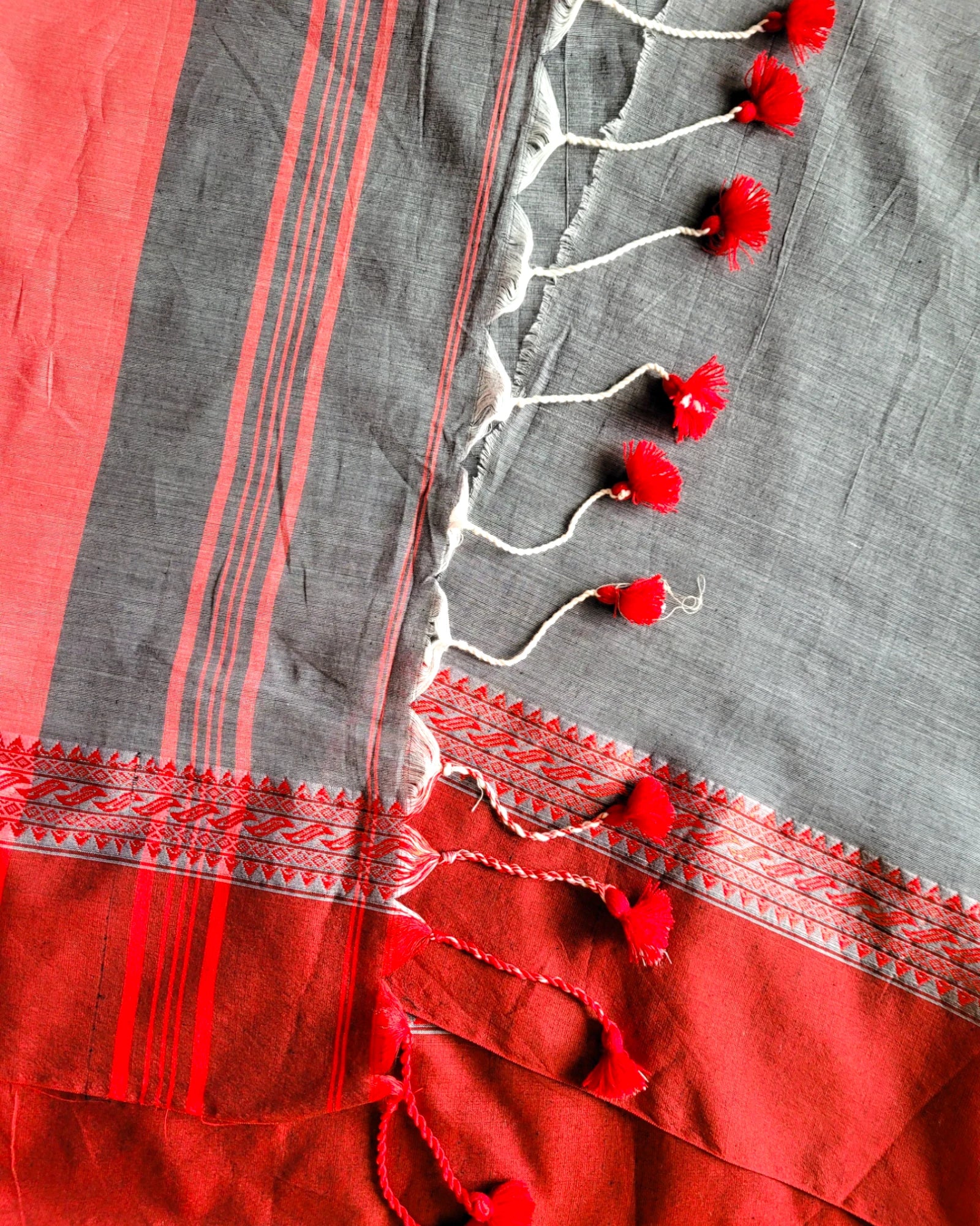 Style: A graceful Kolkata cotton saree in mild, soothing colors, perfect for work wear or daily wear. The soft, airy fabric ensures all-day comfort, while the thread-woven border adds a subtle handcrafted appeal. The self-color blouse complements the saree beautifully, making it a versatile choice for effortless elegance.