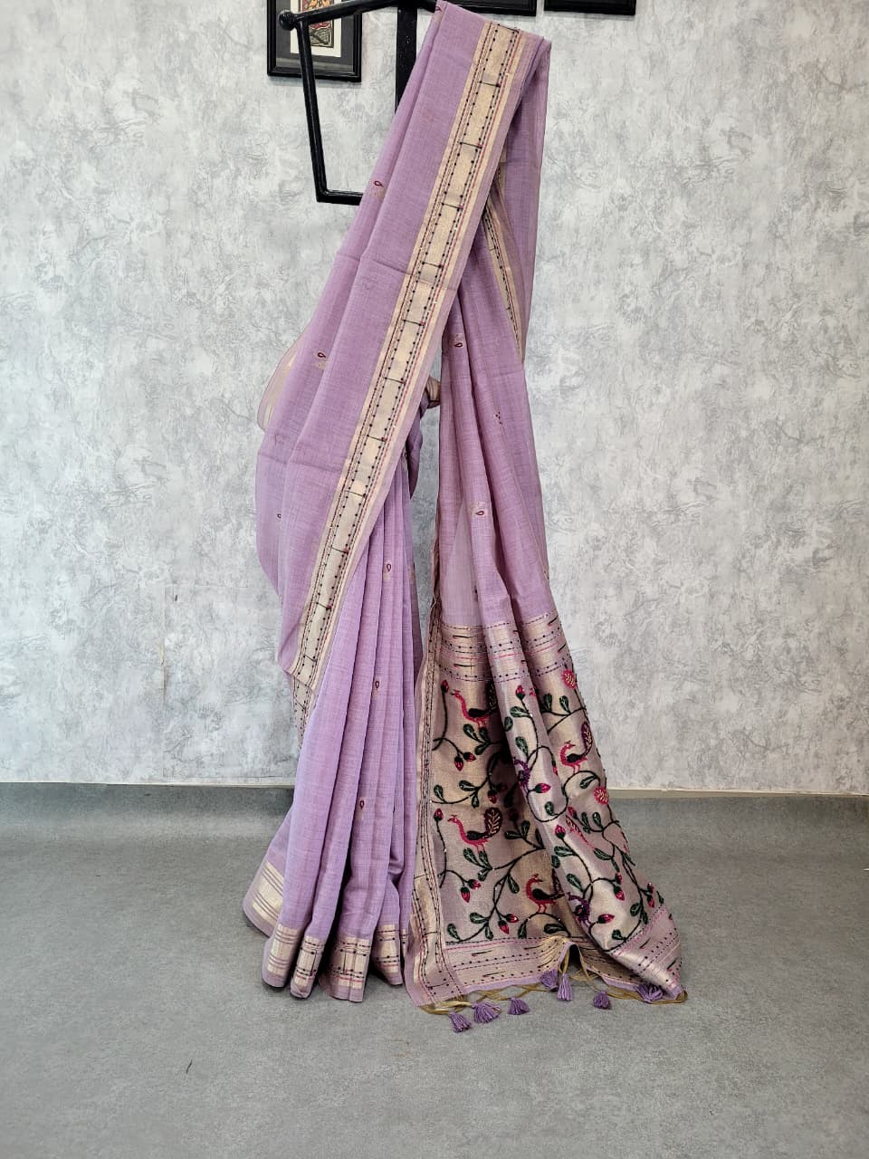 Pallu: Gracefully adorned with mild zari detailing, adding a subtle shimmer to the drape.