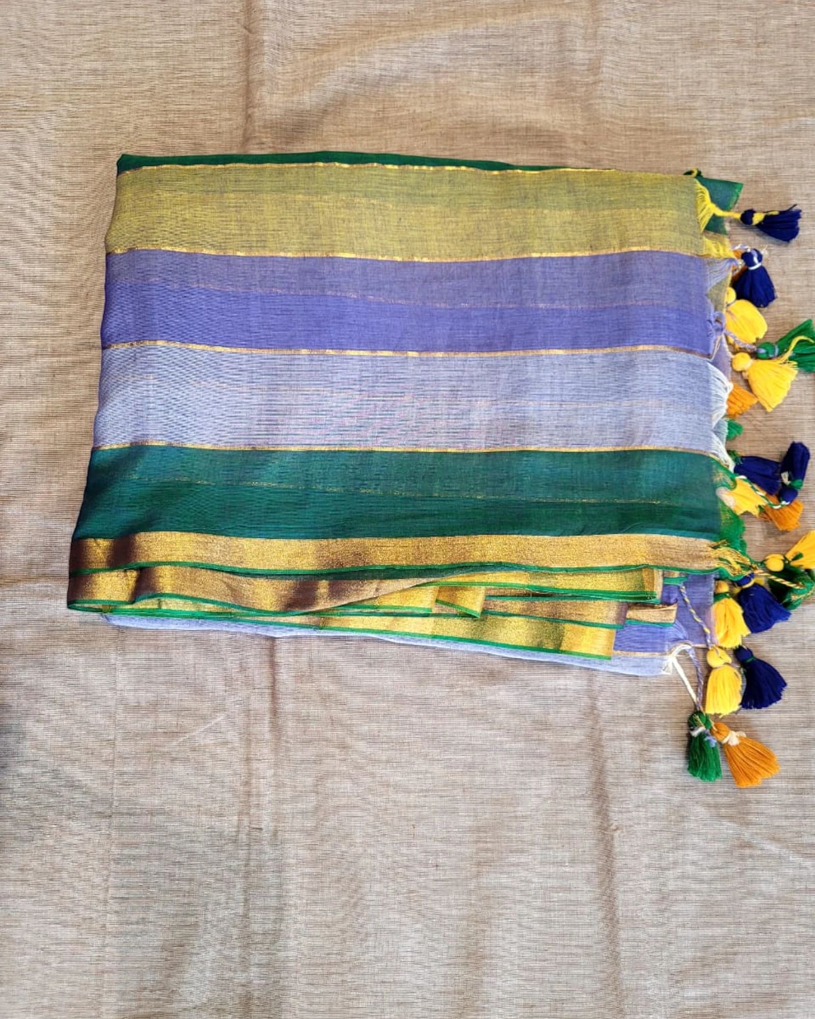Style: Minimal yet chic with zari stripes and subtle checks, perfect for everyday elegance or casual outings.