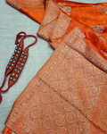 Every thread in this saree carries the legacy of Banarasi artistry, with intricate motifs inspired by Mughal architecture, nature, and heritage patterns. The shimmering zari work along the borders and pallu adds a regal touch, elevating the saree to a statement piece fit for weddings, festive occasions, and cherished celebrations.
