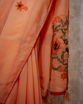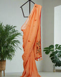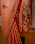 Style: Adorned with delicate hand embroidery featuring French knots all over, this saree is a true work of art. The soft pastel hues enhance its dreamy elegance, making it perfect for celebrations, brunches, or evening soirees.