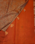 Every thread in this saree carries the legacy of Banarasi artistry, with intricate motifs inspired by Mughal architecture, nature, and heritage patterns. The shimmering zari work along the borders and pallu adds a regal touch, elevating the saree to a statement piece fit for weddings, festive occasions, and cherished celebrations.