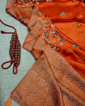 Step into timeless luxury with our Banarasi Satin Saree, a masterpiece that celebrates the grandeur of Banaras weaving traditions. Crafted from the finest satin weave, this saree drapes like liquid silk—smooth, lustrous, and irresistibly elegant. Its soft texture and subtle sheen make it the perfect blend of comfort and opulence.