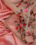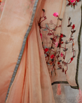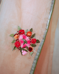 Style: Adorned with delicate hand embroidery featuring French knots all over, this saree is a true work of art. The soft pastel hues enhance its dreamy elegance, making it perfect for celebrations, brunches, or evening soirees.