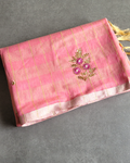 Style: Adorned with delicate French knots in intricate Zardosi and thread work, this saree radiates timeless elegance. The soft pink shade gives it a fresh, feminine look, making it perfect for any occasion where you want to stand out with understated glamour.