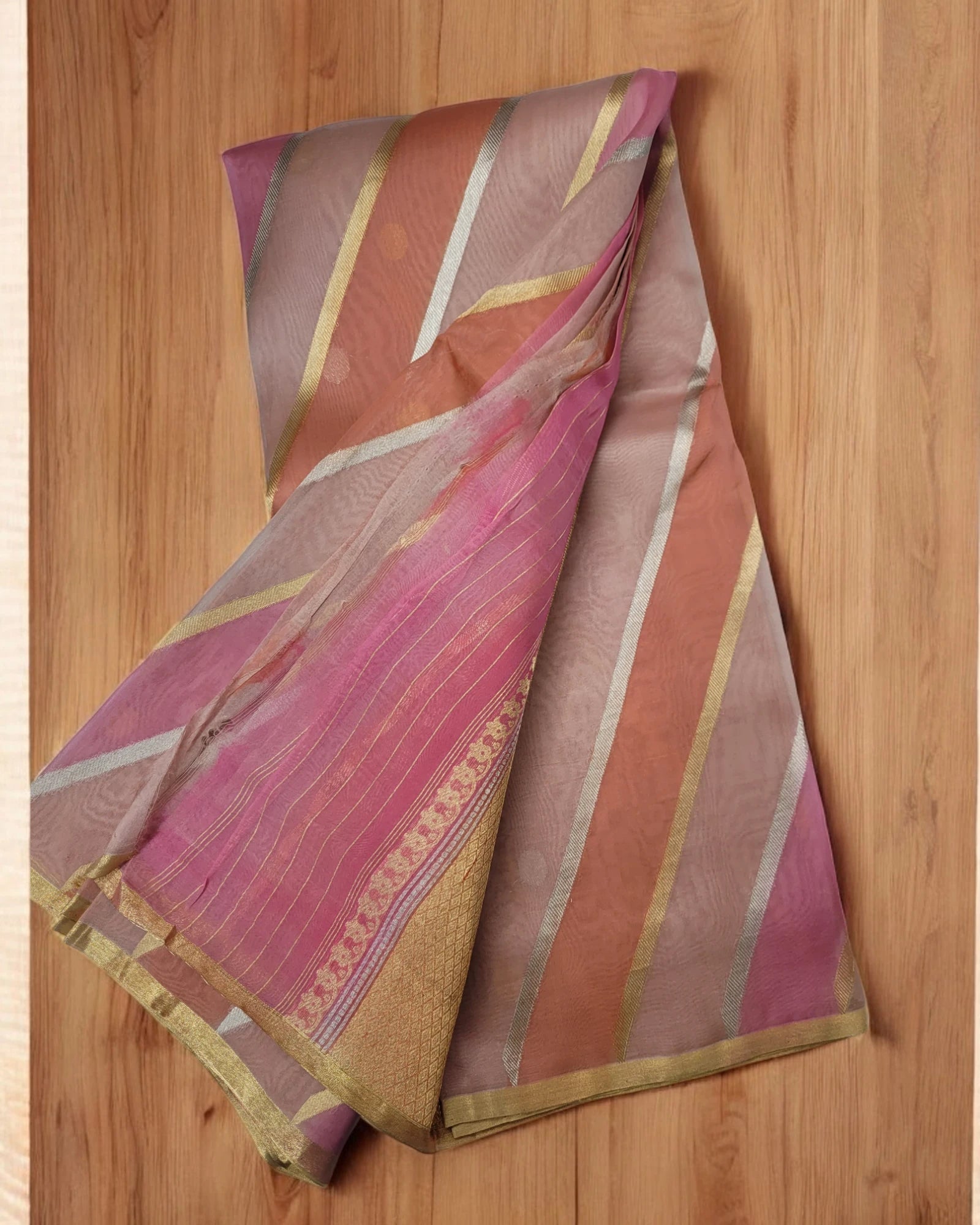 Washing: Organza sarees should be dry cleaned to avoid damage to the delicate fabric.