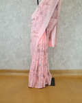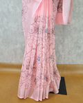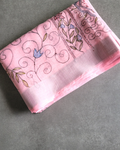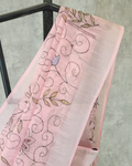 Style: Delicately adorned with intricate hand-thread embroidery, this saree exudes understated luxury. The pastel tones enhance its dreamy charm, making it perfect for daytime events, workwear, or casual elegance.