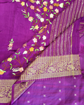 Step into timeless elegance with our Pure Tussar Silk Sarees, delicately hand-embroidered by skilled artisans. Each saree is one-of-a-kind, featuring intricate work such as Kantha stitch, French knots, Kutch embroidery, and more, making it a true collectible for your wardrobe.
