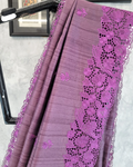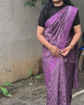 Style: A breezy purple Tussar saree that drapes effortlessly, offering comfort and elegance in equal measure. Its lightweight nature makes it easy to wear and carry, perfect for long workdays or casual gatherings. The soft texture and muted sheen add a refined charm, making it a versatile addition to your wardrobe.