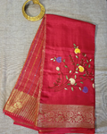 Step into timeless elegance with our Pure Tussar Silk Sarees, delicately hand-embroidered by skilled artisans. Each saree is one-of-a-kind, featuring intricate work such as Kantha stitch, French knots, Kutch embroidery, and more, making it a true collectible for your wardrobe.