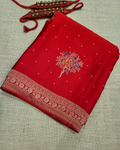 Step into timeless luxury with our Banarasi Satin Saree, a masterpiece that celebrates the grandeur of Banaras weaving traditions. Crafted from the finest satin weave, this saree drapes like liquid silk—smooth, lustrous, and irresistibly elegant. Its soft texture and subtle sheen make it the perfect blend of comfort and opulence.