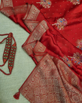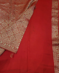 Every thread in this saree carries the legacy of Banarasi artistry, with intricate motifs inspired by Mughal architecture, nature, and heritage patterns. The shimmering zari work along the borders and pallu adds a regal touch, elevating the saree to a statement piece fit for weddings, festive occasions, and cherished celebrations.