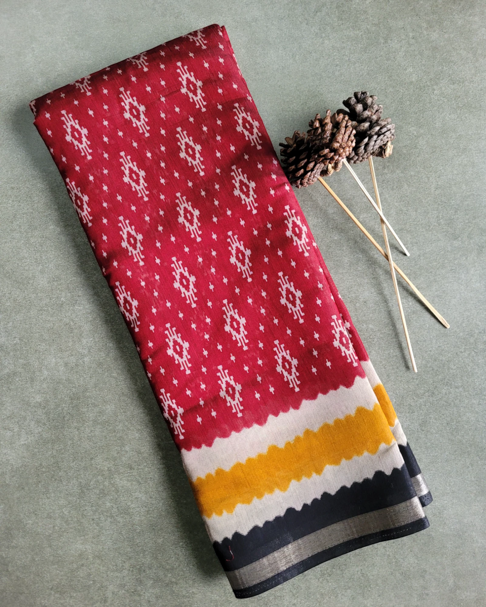 Red Triveni Cotton Saree