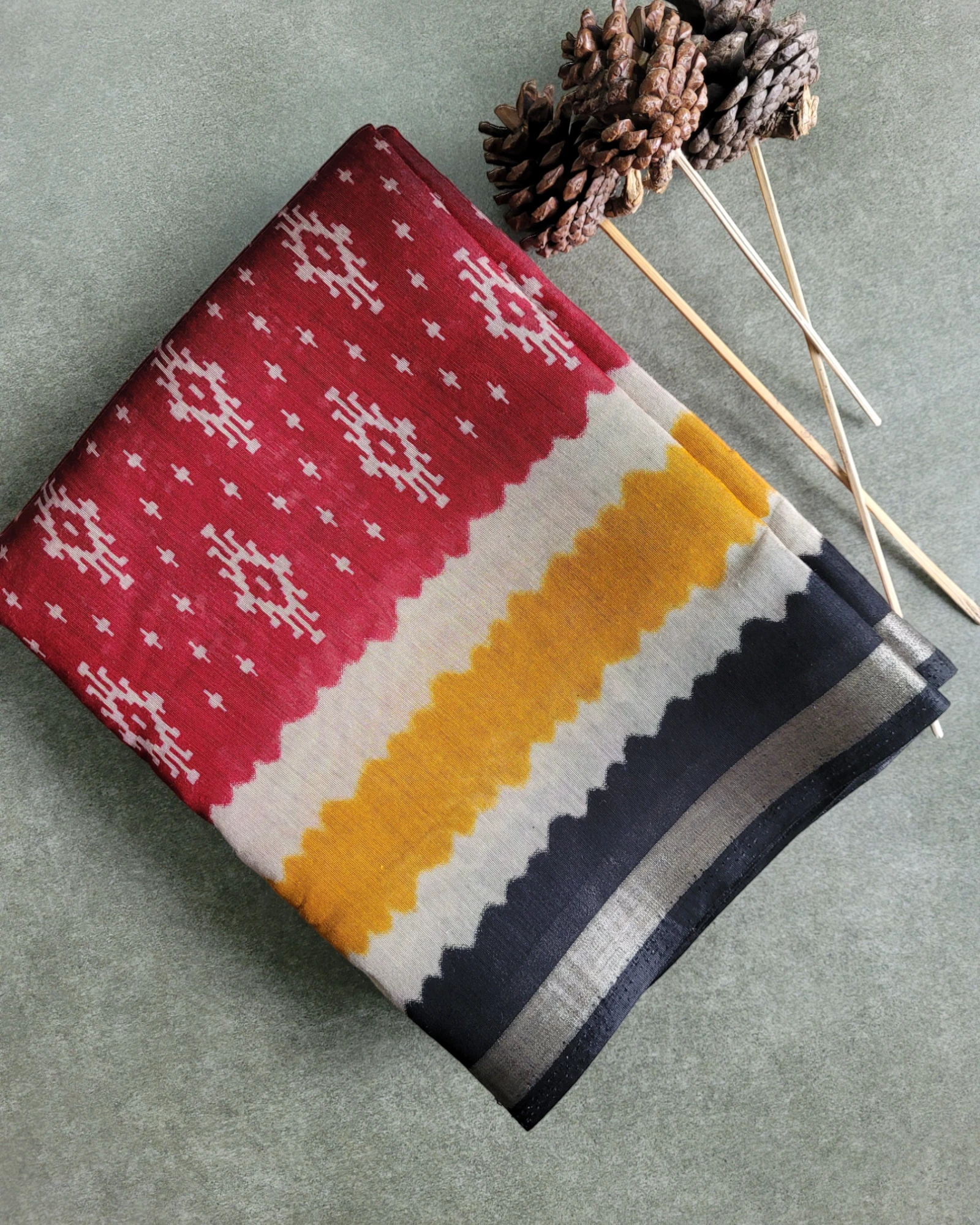 Border: A subtle zari border adds a hint of sophistication to the earthy palette.