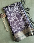 Upgrade your saree collection with our Slate Kriti Tussar saree. Made from semi tussar fabric, it features all over prints for a unique and stylish look. Its lightweight and easy to drape design makes it effortless to carry, giving you a comfortable yet fashionable option for any occasion.