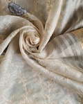 Style: An off-white net saree adorned with exquisite all-over embroidery, creating a dreamy, textured look. The saree is finished with a beautifully detailed lace border, adding a touch of grace and charm. Perfect for evening soirées, festive gatherings, or elegant celebrations.