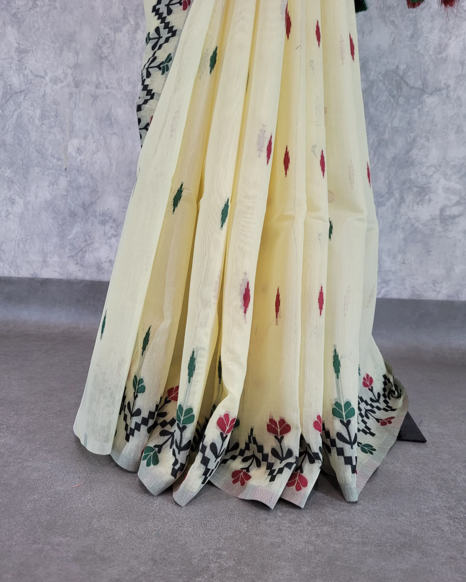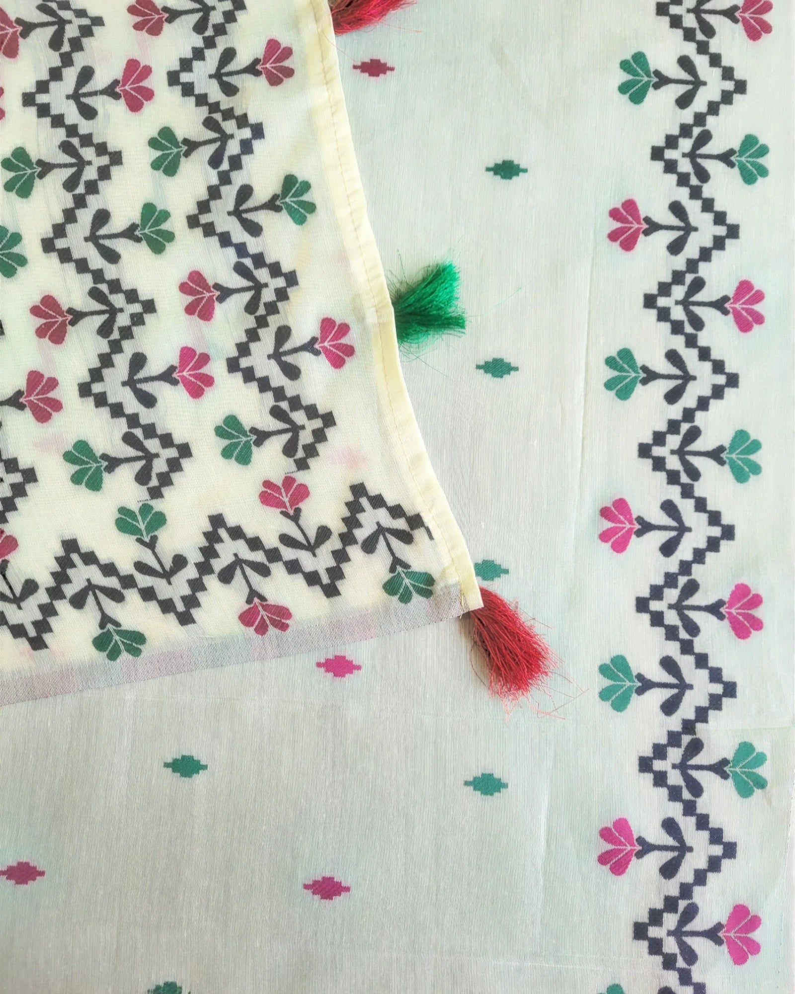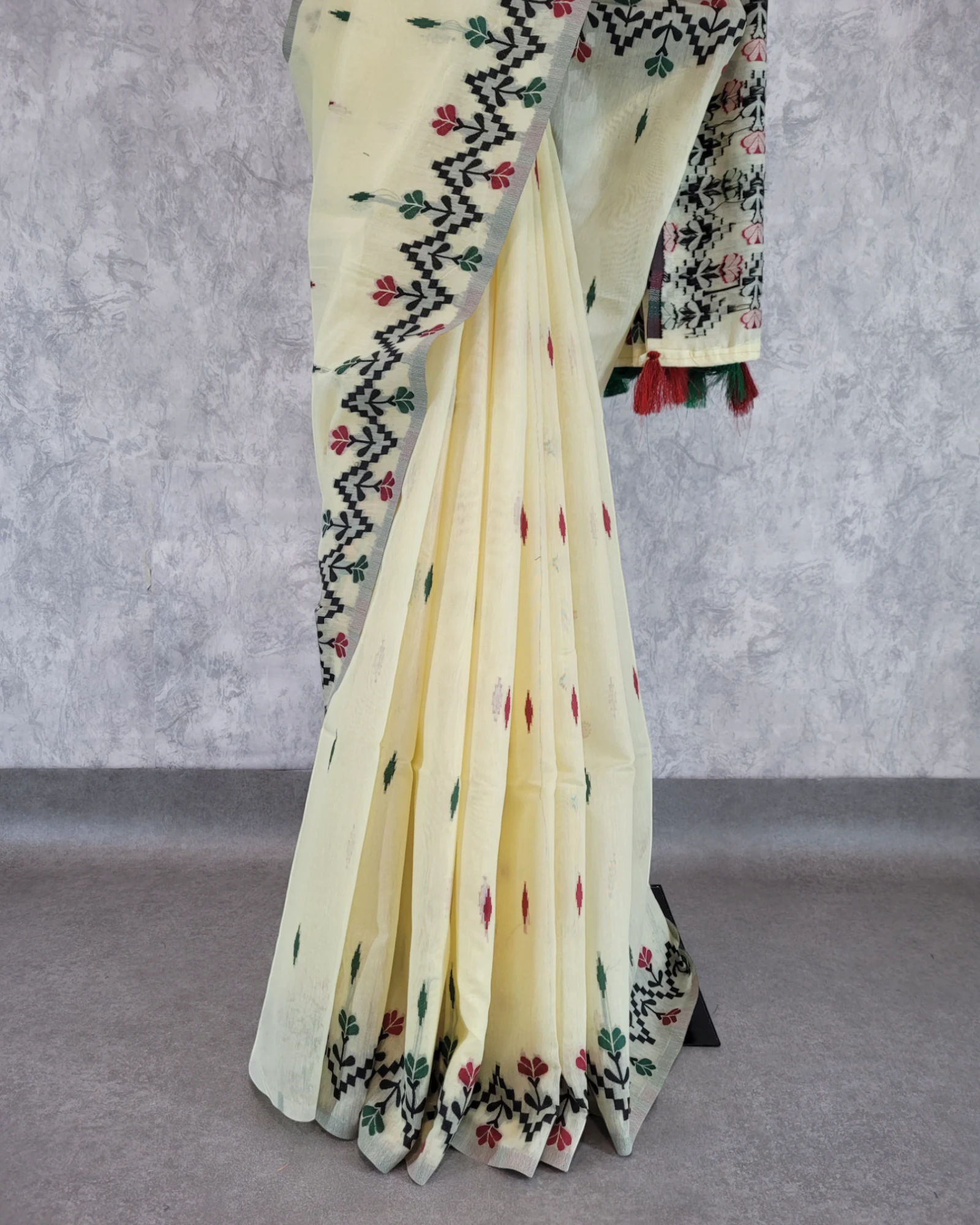 Design: Features elegant woven borders paired with all-over thread buttas for detailed visual appeal.